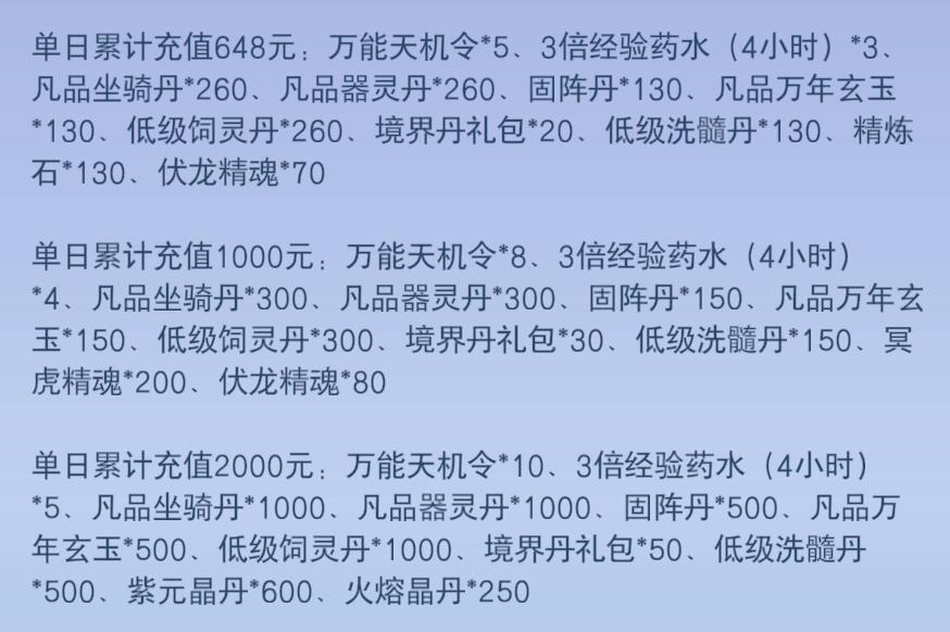 随机3级宝石*1、[抽奖]白银钥匙*5、低级饲灵丹*10、元宝*2000