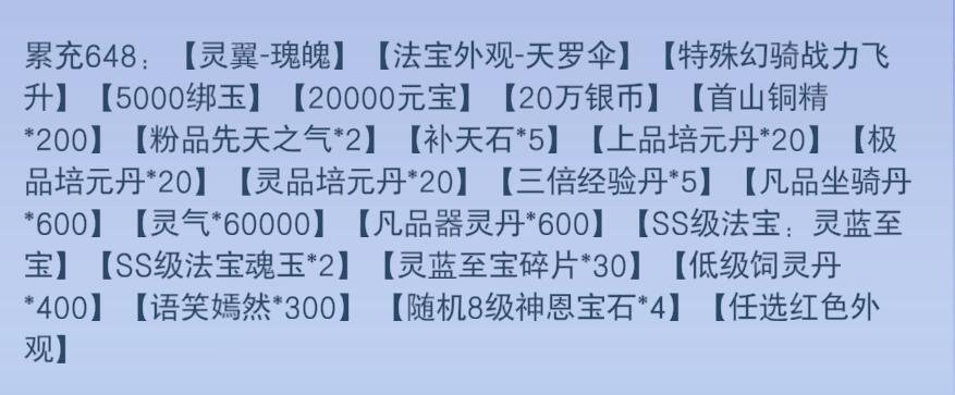 神火炎灵*2、天灵晶*1、凡品万年玄玉*50、寻宝图*20、S级法宝魂玉*1